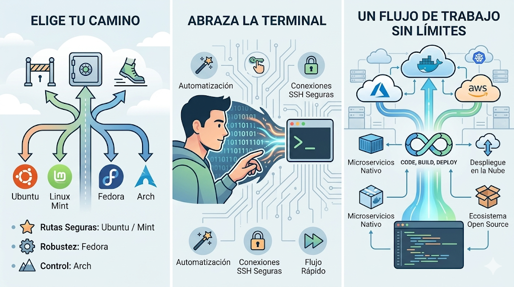 El consejo final: No intentes aprender todo el primer día. Instala tu distro, abre la terminal para tus tareas diarias básicas y, poco a poco, irás descubriendo por qué tantos profesionales deciden no mirar atrás. ¡Bienvenido al ecosistema!